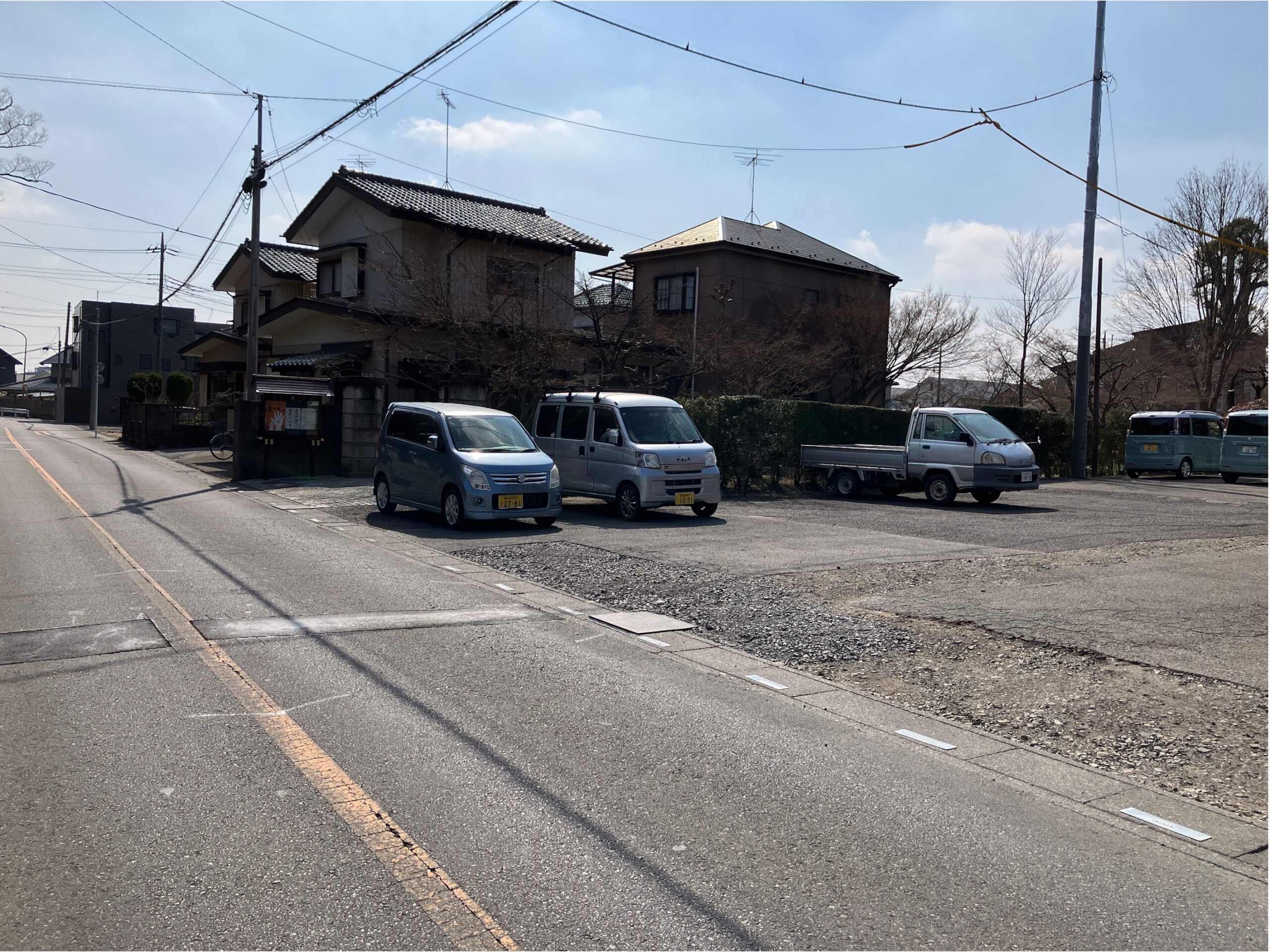 右側、車がとまっているところが駐車場になります。